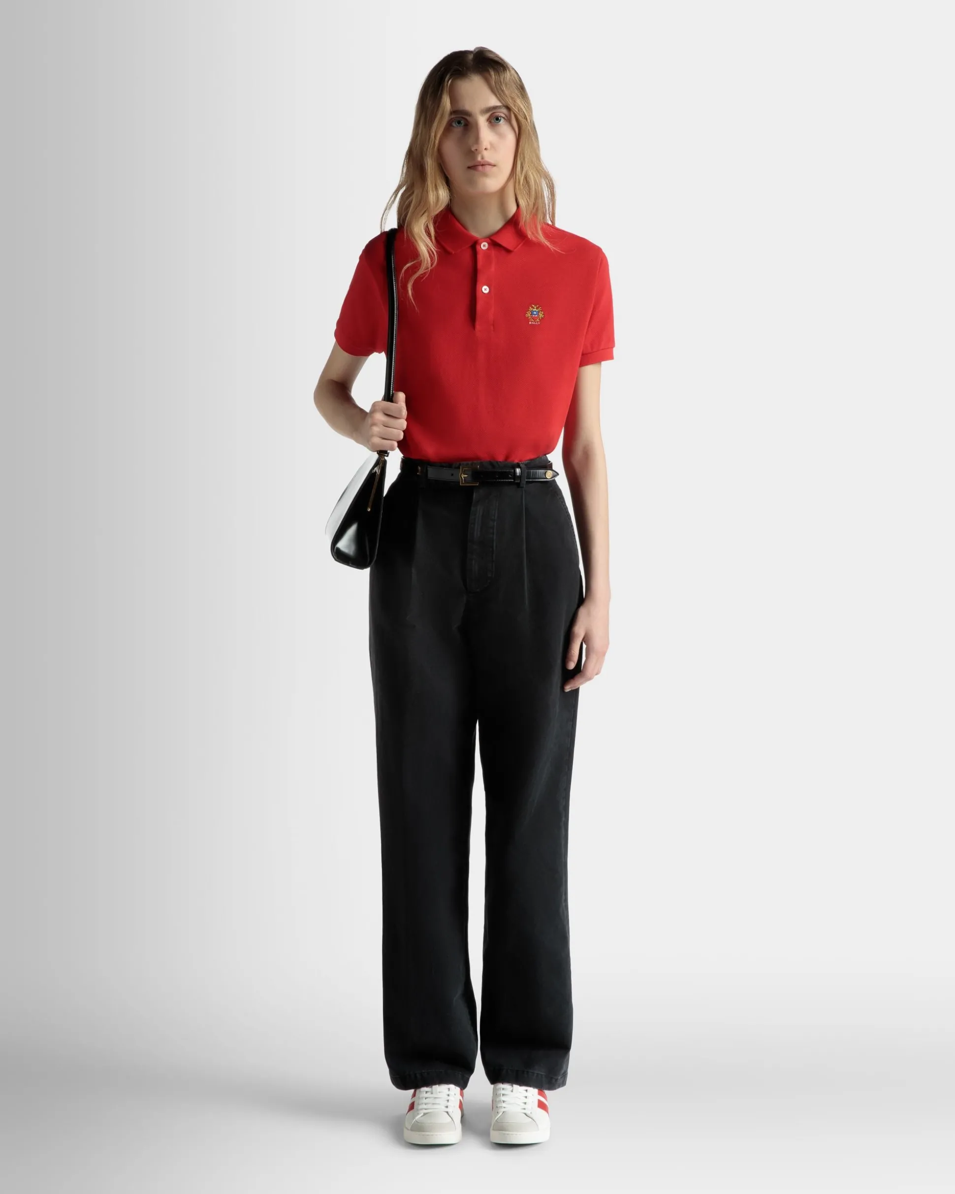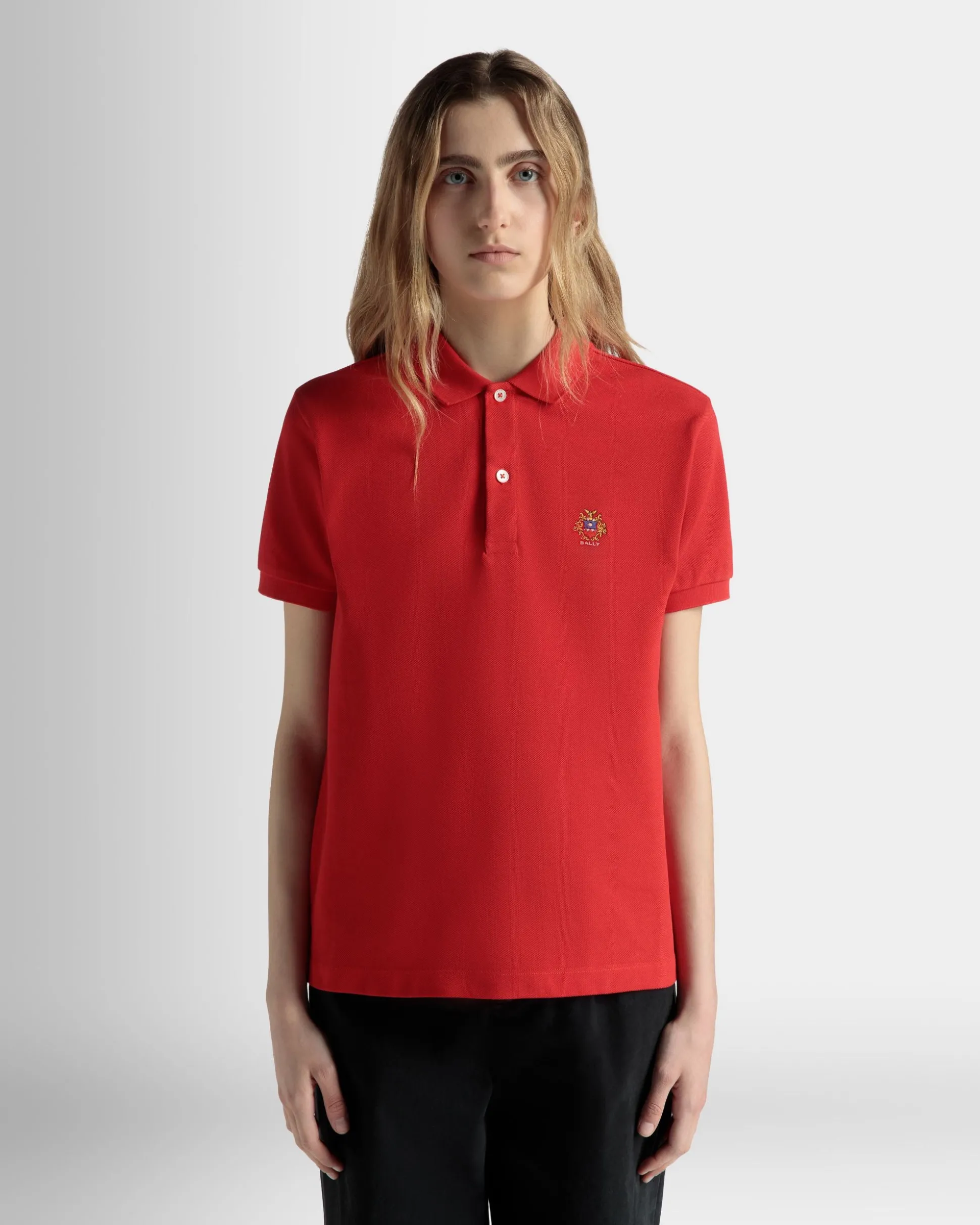 In premium cotton, this short-sleeve polo shirt is a pop of color in a classic form. Bally Crest embroidery further reinforces the Swiss references.