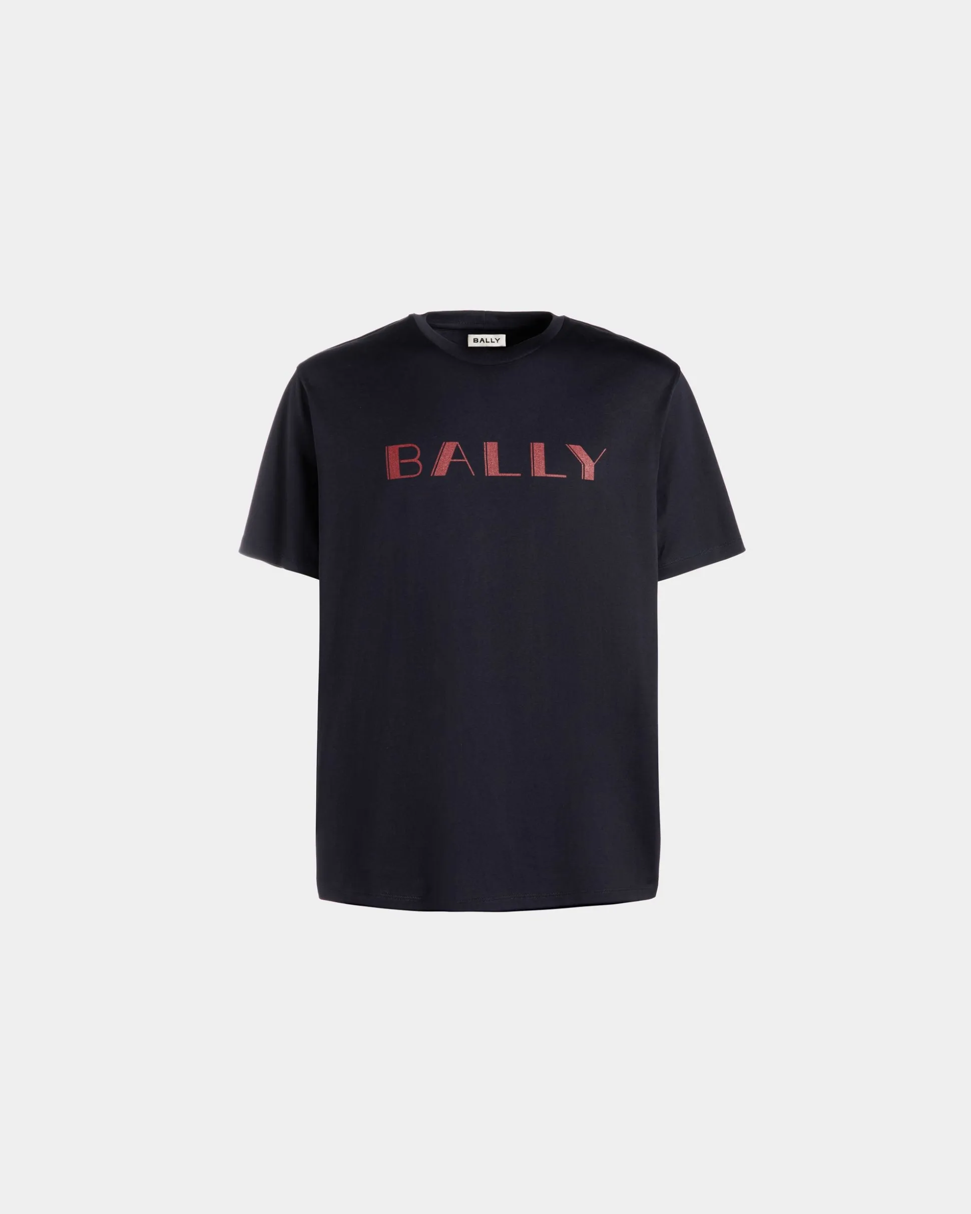 This finely crafted navy blue cotton t-shirt is trimmed by a vintage-inspired Bally logo at the front. The ribbed crewneck collar adds a sporty touch.