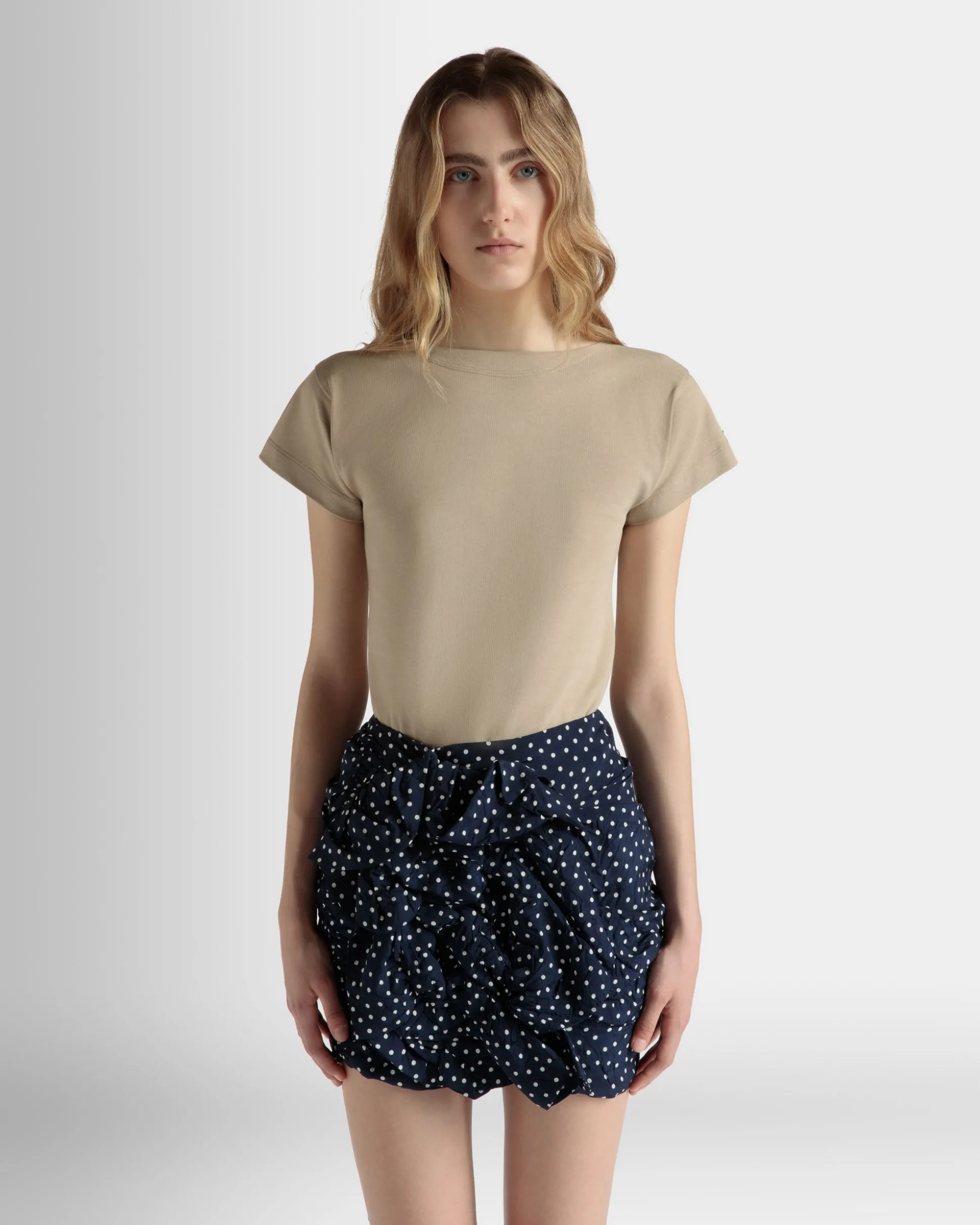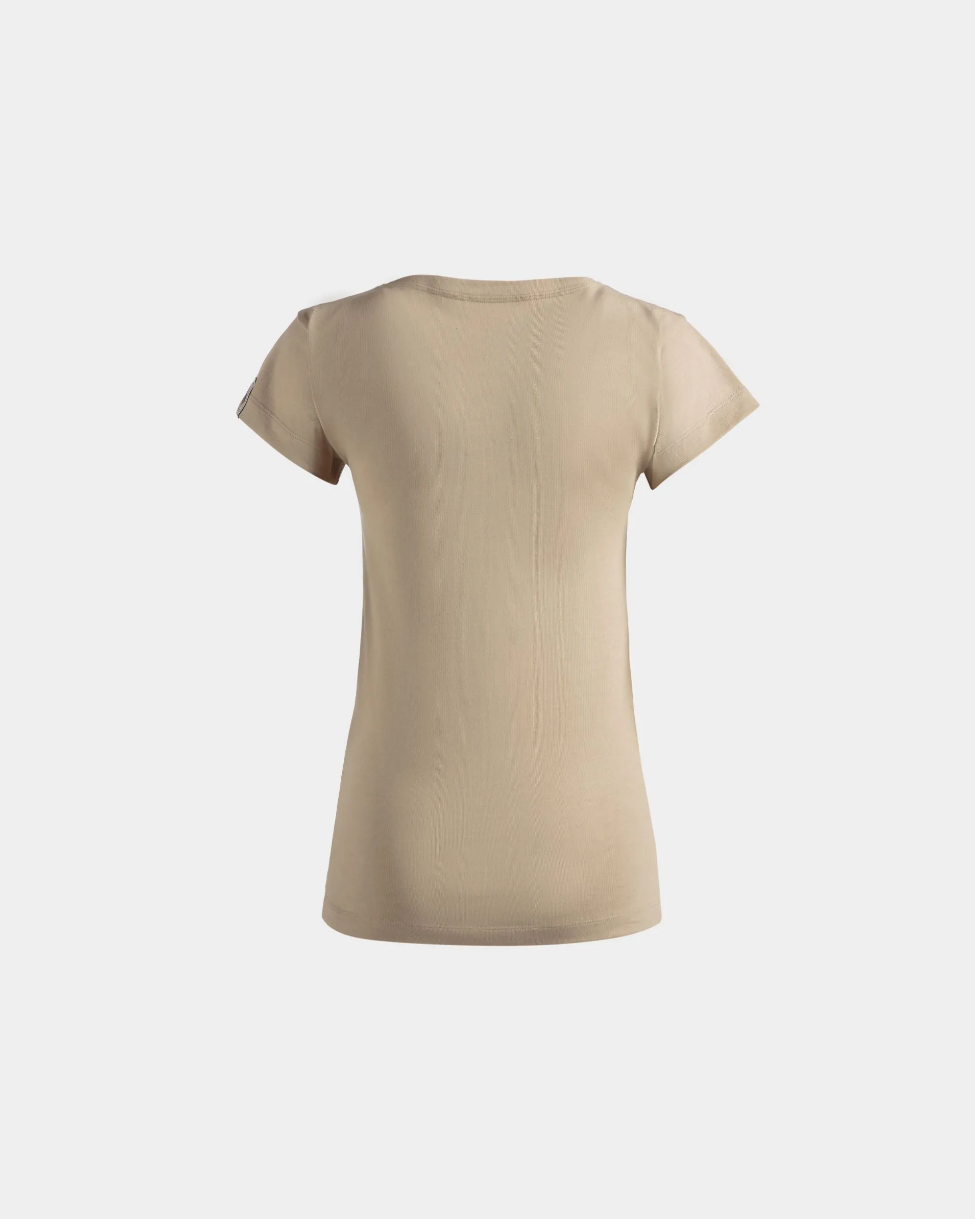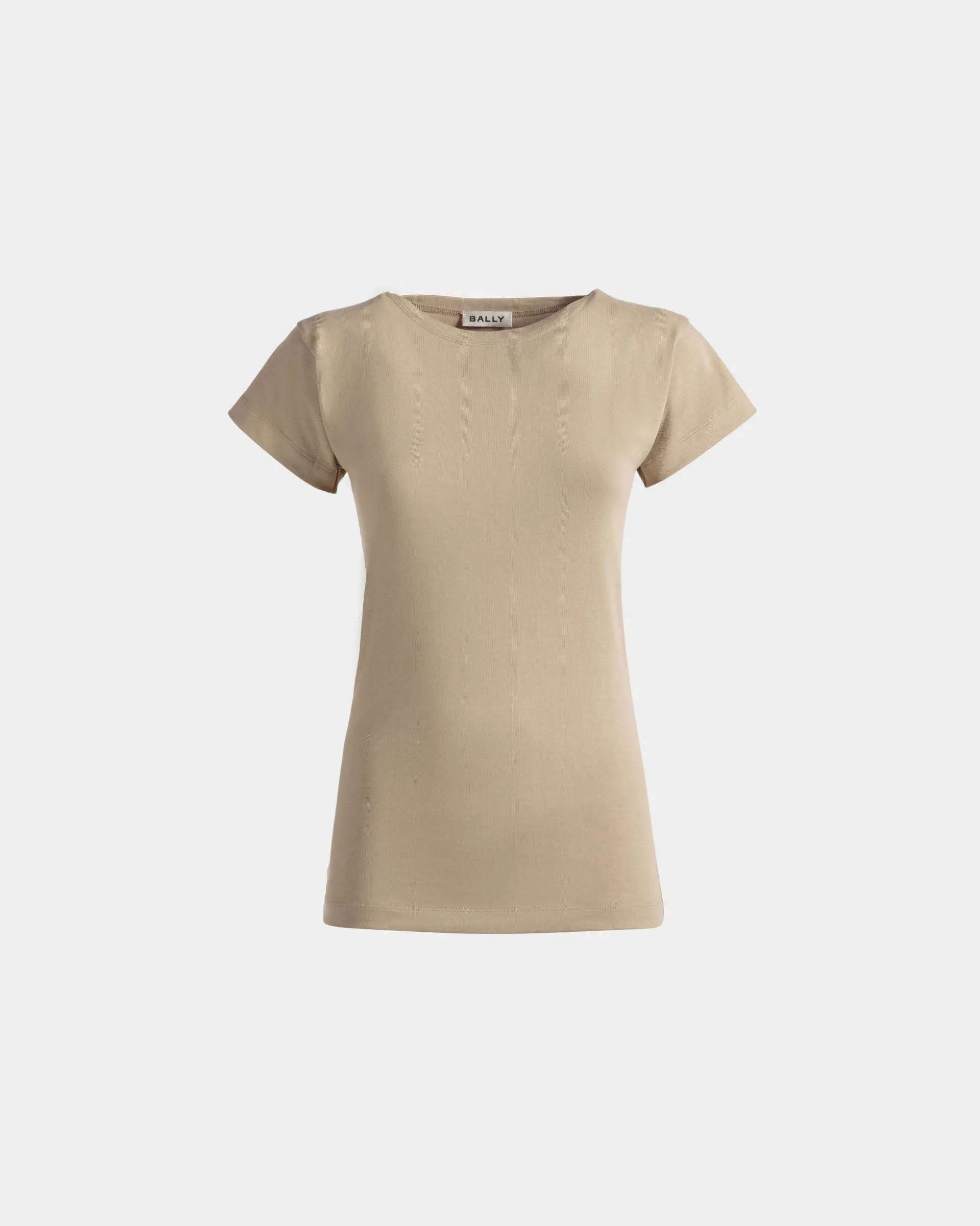 Understated and elegant beige cotton t-shirt. The premium fabric and classic waisted cut make it a versatile wardrobe essential.