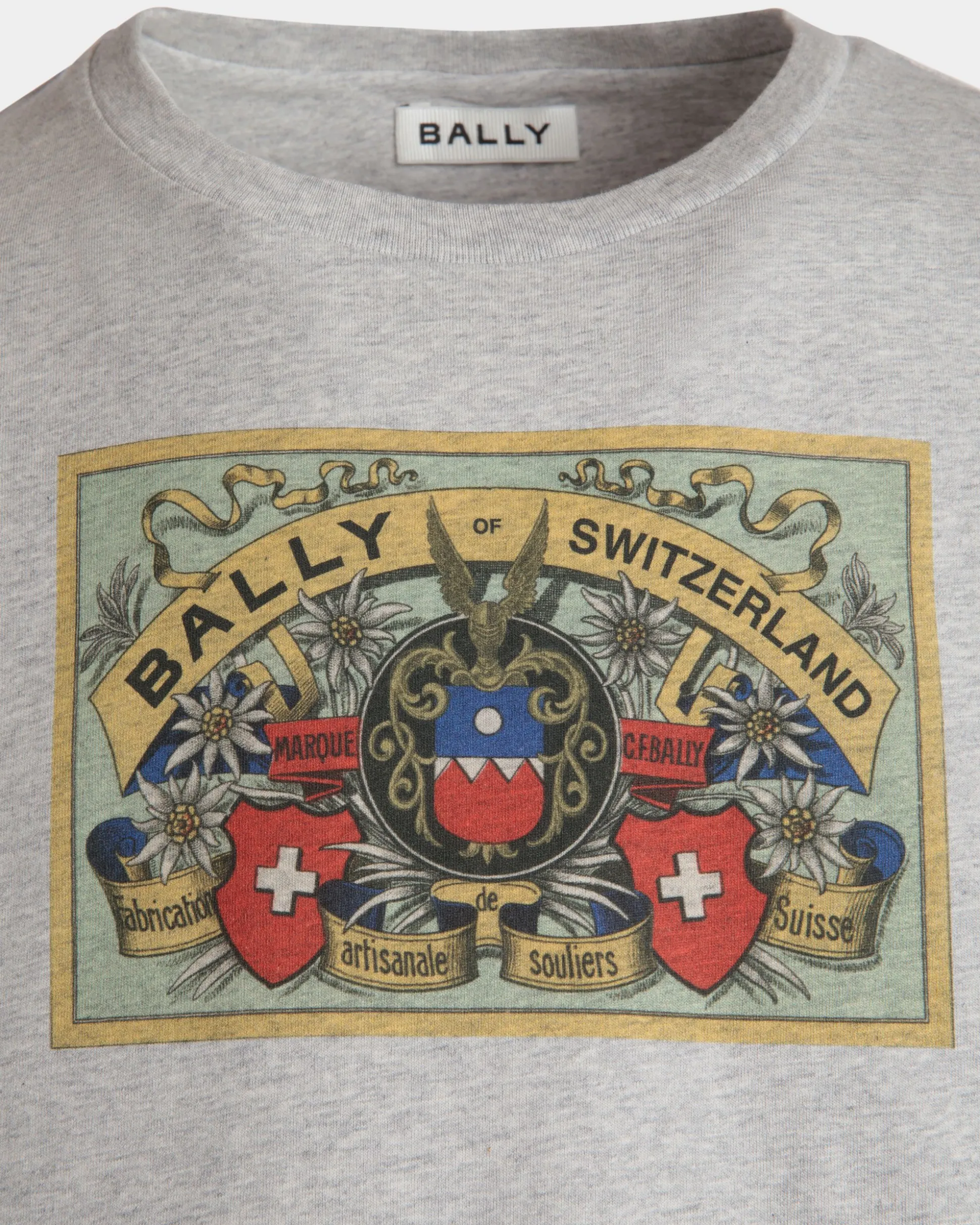 Crafted from premium organic cotton, a Bally Crest graphic from the archives is printed on the front of this classic mélange grey tee.