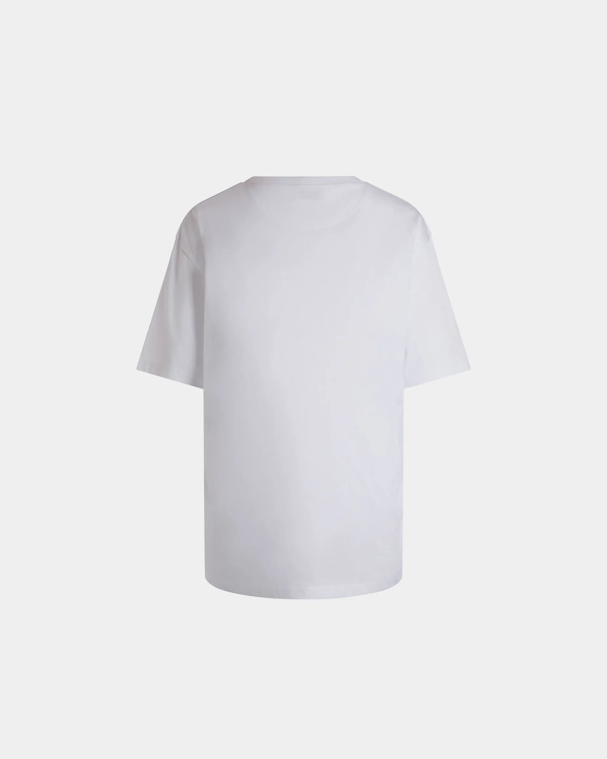 A colorful Bally Ladies print decorates this classic t-shirt in soft white cotton.