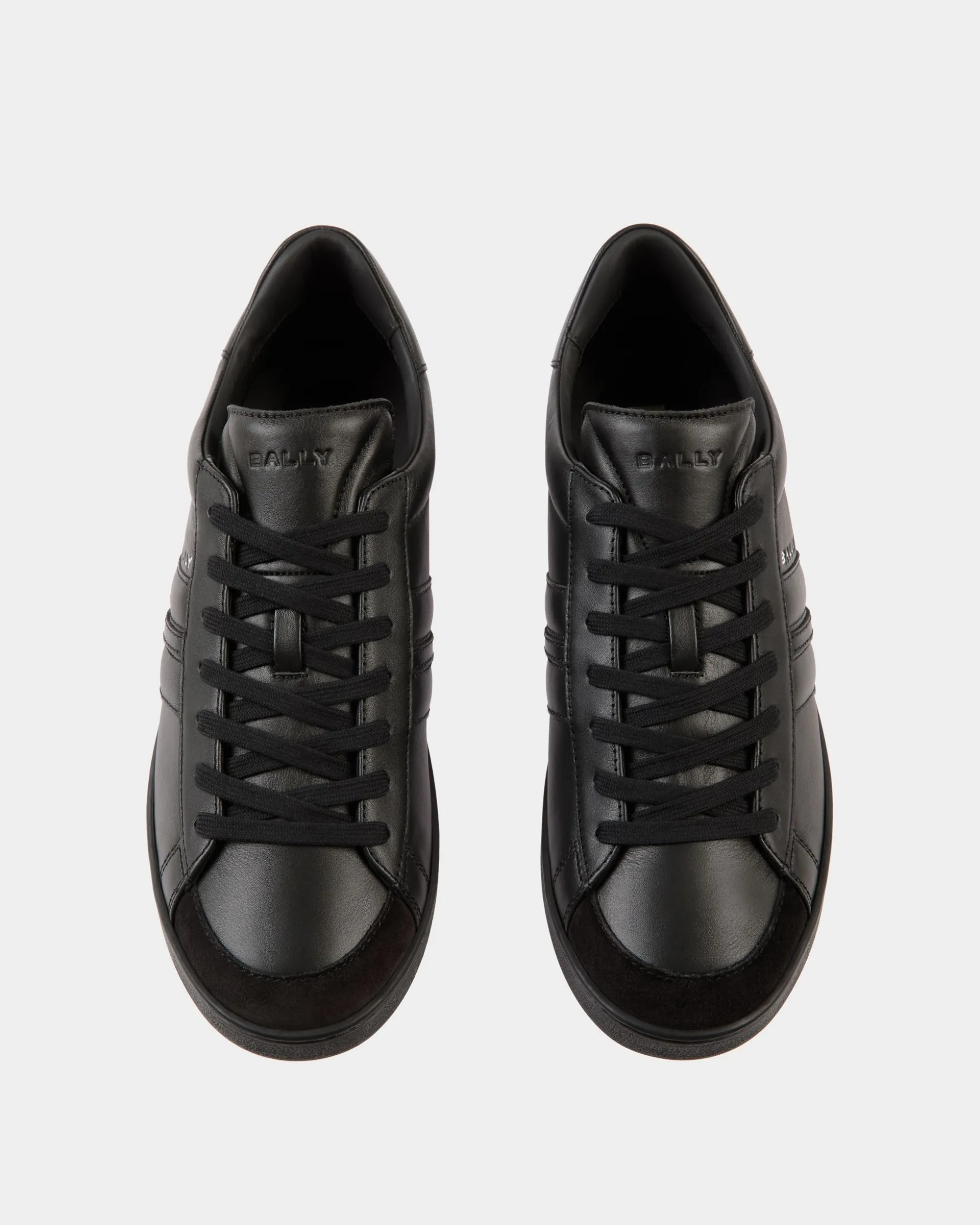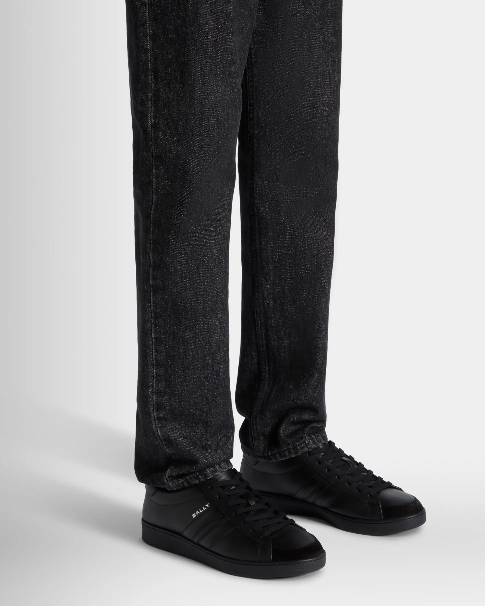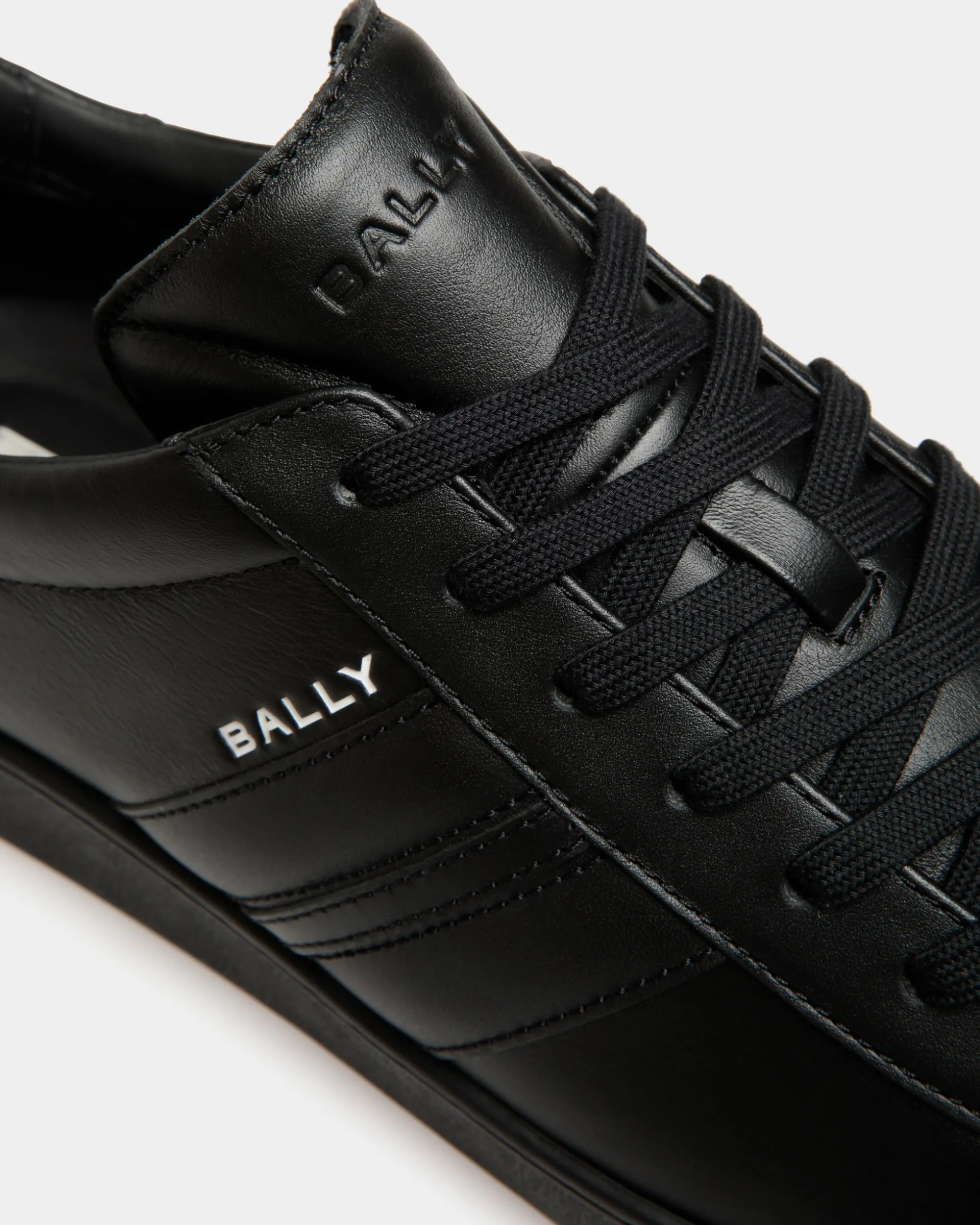 The black leather of this lace-up Tennis sneaker brings sophisticated style to a timeless footwear design. A Bally Ribbon is found at the sides, trimmed by a debossed logo that is echoed on the padded tongue.